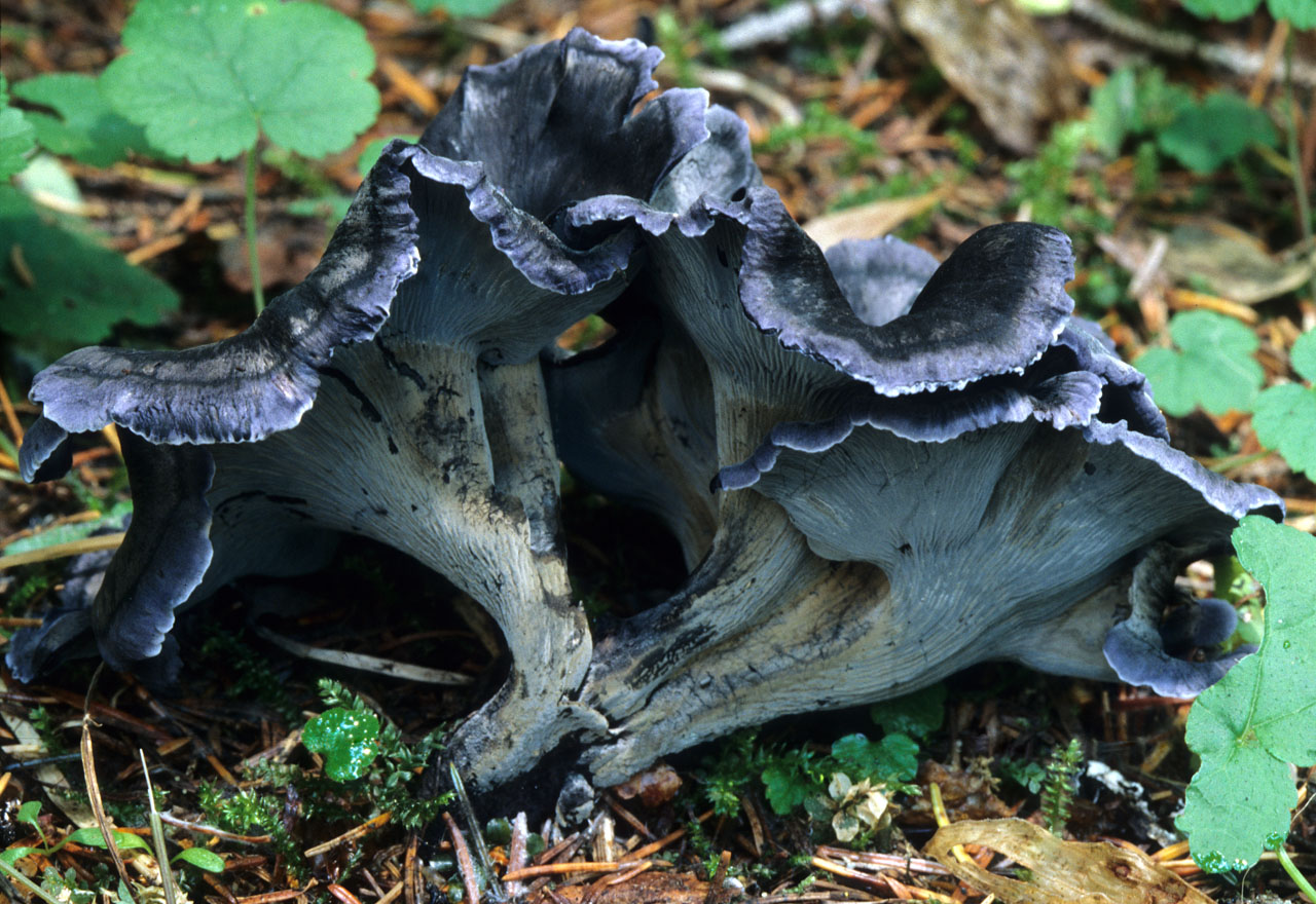 - ComentáriosEste distinto cogumelo azul a arroxeado possui apenas uma relação superficial com as cantarelas, como Craterellus cornucopiodes . A evidência micro-mofológica e molecular coloca firmemente Polyozellus multiplex nos Thelephorales, junto com Thelephora , Sarcodon , Hydnellum e Boletopsis .Este é um complexo de espécies, são necessárias mais pesquisas para determinar nossos táxons da Califórnia.